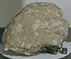 | 61156 | Roca | Brecha fundida por impacto | ![]() | Fuerte fusión poiquilítica por impacto, color gris medio, que ha sido metamorfizada térmicamente. |