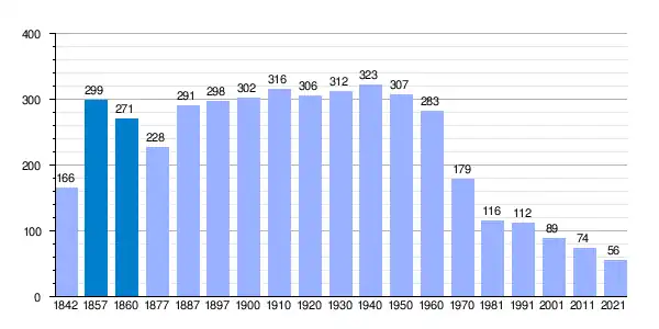 Población de derecho según los censos de población del INE. Población de hecho según los censos de población del INE.Entre el Censo de 1857 y el anterior, crece el término del municipio porque incorpora a 345005 (Arroyo).[3] |