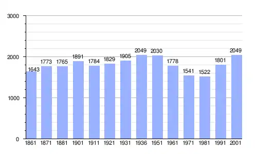 | Gráfica de evolución demográfica de Poggio Nativo entre 1861 y 2001 |