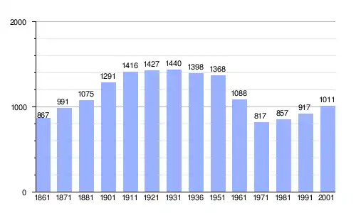 | Gráfica de evolución demográfica de Poggio Picenze entre 1861 y 2001 |