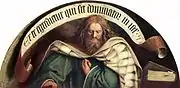 En la parte superior hay cuatro figuras que predijeron la llegada de Cristo. Dos de ellas pertenecientes a la tradición pagana y dos a la tradición bíblica. Los cuatro personajes dirigen la composición hacia la escena de la Virgen de las tablas inferiores, ya sea a través de la mirada o la orientación de sus caras y cuerpos. Sobre ellos flotan textos en filacterias.