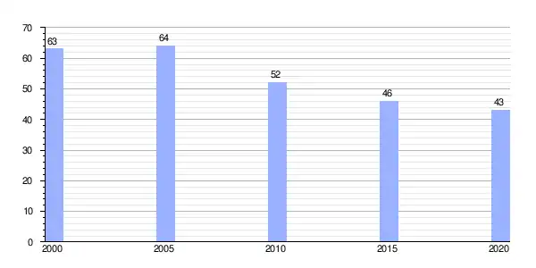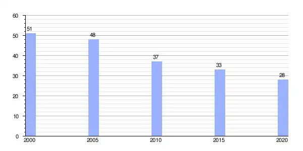 | Gráfica de evolución demográfica de Pol (aldea) entre 2000 y 2020 |