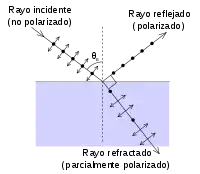 Al reflejarse un haz de luz no polarizado sobre una superficie, la luz reflejada sufre una polarización parcial de forma que el componente del campo eléctrico perpendicular al plano de incidencia (plano que contiene la dirección del rayo de incidencia y el vector normal a la superficie de incidencia) tiene mayor amplitud que el componente contenido en el plano de incidencia.