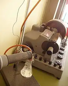 La polarografía es una subclase de voltamperometría donde el electrodo de trabajo es un electrodo de gota de mercurio (DME), útil por su amplio rango catódico y su superficie renovable. Fue inventado en 1925 por el químico checo Jaroslav Heyrovský[1][2][3][4][5][6] con la puesta a punto del primer polarógrafo.