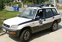 Los vehículos más comunes de la Policía Griega son los Citroën Xsara, Škoda Octavia, Mistubishi Lancer Evolution X, Hyundai i30 y el Citroën C4. Años anteriores fueron utilizados los siguientes modelos:
