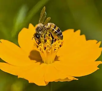 La abeja, Apis mellifera, es el insecto social más estudiado hasta el momento. Se cree que esta especie se originó en África y que recientemente invadió las regiones templadas, y a diferencia de ciertas abejas y avispas sociales de las mismas regiones, esta colonia melífera puede sobrevivir al invierno. La multiplicación de colonias ocurre por división de una colonia inicial, por un procedimiento denominado enjambramiento. Estimulada por la multitud de abejas obreras, la reina madre se va de la colmena junto con un enjambre, es decir, una parte de las abejas obreras, con el fin de fundar una nueva colonia. En aquella colonia que dejó atrás pueden, quedar varias reinas en desarrollo o solo una, en todo caso la colonia antigua contiene alrededor de un tercio del número original de obreras. Prosiguiendo, la abeja reina realiza múltiples vuelos nupciales durante los cuales se aparea con zánganos, es decir, machos, y acumula suficiente semen hasta el último de sus días con vida, mientras que el zángano muere cuando sus órganos reproductores explotan dentro de la hembra.