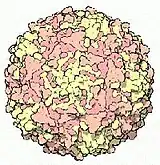 El poliovirus es un virus perteneciente al género de enterovirus, es de la familia Picornaviridae. Es el agente causante de la poliomielitis en humanos.[1] Es un pequeño virus ARN (ácido ribonucleico), de cerca de 300 Angstrom de diámetro, cuyo genoma está compuesto por una hélice simple de ARN en sentido positivo,(virus monocatenario positivo); contiene alrededor de 7500 bases de longitud.[2] El poliovirus fue aislado en 1908 por Karl Landsteiner y Erwin Popper. En 1981, el genoma del poliovirus fue publicado por dos diferentes grupos de investigadores, uno del MIT y el otro de la Universidad de Nueva York.[3] Debido a su corto genoma y su simple composición—solamente una molécula de ARN y una cubierta proteica icosaédrica sin envoltura que la cubre— el poliovirus está considerado como uno de los virus más simples.[4]
