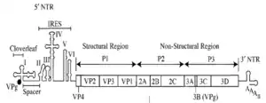 - VPg (3B), una pequeña proteína que se funde con el ARN viral y es necesaria para la síntesis de hebras de ARN virales positivas y negativas