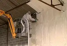 Poliuretano proyectado es un material plástico de composición celular empleado como aislante térmico y acústico y como impermeabilizante tanto en edificación como en industria.[1] Es también conocido con el nombre de espuma de poliuretano.