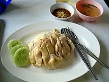 El pollo con arroz de Hainan es un plato de origen chino relacionado más frecuentemente con la gastronomía de Singapur o Malasia, si bien también se vende comúnmente en la vecina Tailandia, y está presente en Hainan, en la propia China. Así llamado por sus raíces en la cocina de Hainan y por su adopción por parte de la población emigrante china de Hainan en la región de Nanyang (actual sureste asiático), la versión presente en la zona de Singapur combina elementos de las gastronomías cantonesa y de Hainan junto con gustos culinarios del sureste asiático. El plato se popularizó en Singapur en los años 1950 por Moh Lee Twee, cuyo Restaurante Pollo con Arroz Swee Kee funcionó de 1947 a 1997.[1]