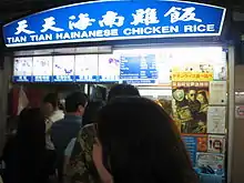En Singapur, el pollo con arroz de Hainan se vende en puestos y food courts. Hay puestos de pollo con arroz de Hainan que han establecidos franquicias o sucursales, incluyendo Five Star Hainanese Chicken Rice, Boon Tong Kee, Tian Tian, Loy Kee y otros, que tienen muchos locales por toda la isla. El precio varía entre 2 y 4S$ (el último si el plato incluye un muslo). Algunos locales sirven extras, como huevo duro, hígado de pollo, tofu y kai-lan como guarniciones, costando habitualmente cada plato entre 0,50 y 1,50S$. Algunos sirven platos combinados que incluyen estas guarniciones.
