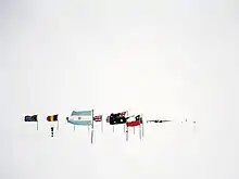 En el Polo Sur Ceremonial, se encuentran las banderas de los 12 primeros firmantes del Tratado Antártico: