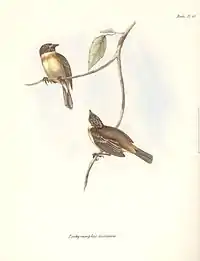- Gill, F., Donsker, D. & Rasmussen, P. (Eds.). «Tyrant flycatchers». IOC – World Bird List (en inglés). Consultado el 20 de octubre de 2022. Versión/Año: 12.2./2022.