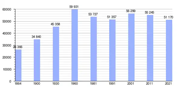 | Gráfica de evolución demográfica de Pombal entre 1864 y 2021 |