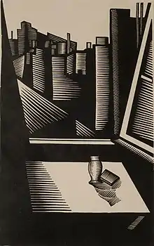 - 1929. Ciudad, xilografía de 50 x 30 cm. Colección Museo Nacional de Bellas Artes.[9]