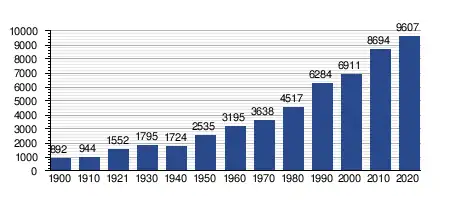| Gráfica de evolución demográfica de Pomuch entre 1900 y 2020 |