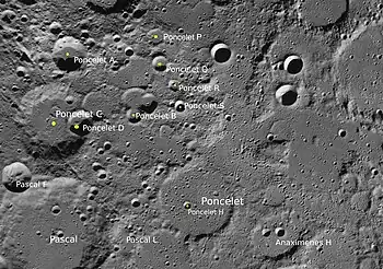 Por convención estos elementos son identificados en los mapas lunares poniendo la letra en el lado del punto medio del cráter que está más cercano a Poncelet.
