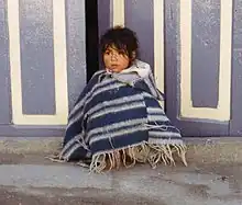 Niña ecuatoriana con poncho.