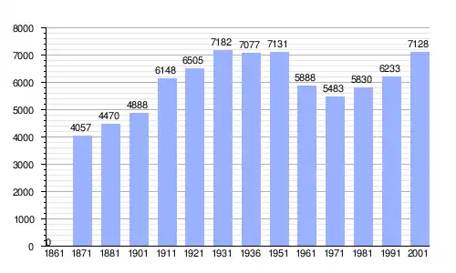 | Gráfica de evolución demográfica de Ponte di Piave entre 1861 y 2001 |