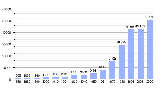 | Gráfica de evolución de Poprad entre 1869 y 2020 |