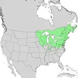 El rango de distribución de Populus grandidentata va desde el norte del estado de Virginia hasta Maine y desde la Isla del Cabo Bretón, a Nueva Escocia; desde el oeste hasta el sur este de Manitoba y Minnesota; al sur a través de Iowa hasta el extremo noreste de Misuri; y desde el este a través de Illinois, Indiana, Ohio, y Virginia Occidental. También pueden encontrarse algunas poblaciones aisladas en el estado de Kentucky, Tennessee, Carolina del Norte y Carolina del Sur.[3]