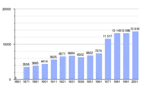 | Gráfica de evolución demográfica de Porcia entre 1861 y 2001 |