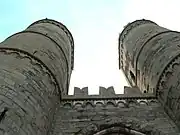 También a cargo del laboratorio de d'Andrade, se restauró en esta época la torre norte y, con ella, el arco que cubre la entrada de la puerta; se incorporaron además las esculturas de los capiteles (las águilas de estilo románico pisano).