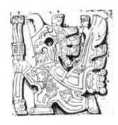 - Figuras esculpidas en el dintel de la puerta del Sol según el dibujo de Charles Wiener: Perou et Bolivie, de 1880.
