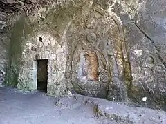 La leyenda narra que en el siglo XV unos navegantes genoveses toparon con un fuerte temporal. El azar los arrastró hacia la bahía de Portals Vells, entraron en la cala a resguardarse y, en agradecimiento, depositaron la imagen de una virgen en una de las cuevas artificiales que los canteros habían abierto en el acantilado para extraer bloques de piedra. Durante el mismo siglo, trasladaron la imagen de la Madre de Dios de Portals a una capilla de la villa de Calviá y, cuenta la leyenda, que cada vez que la colocaban en el lugar, misteriosamente, volvía a la cantera donde por primera vez fue depositada por los marineros. Allí se estuvo venerando hasta 1866, cuando, para hacer más cómoda la visita, trasladaron a la efigie a unos terrenos donde se había construido el nuevo oratorio.