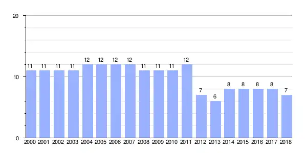 | Gráfica de evolución demográfica de Portela entre 2000 y 2018 |