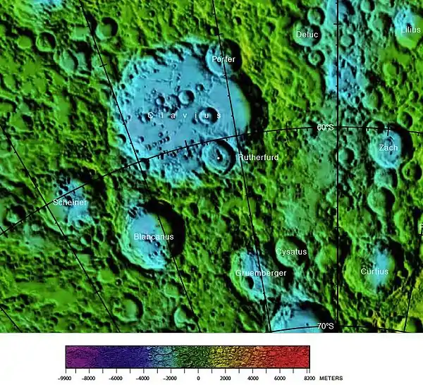 ![]() Localización de Porter, en el bordr noreste de Clavius |