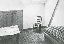 Su caballete, paleta y pinceles fueron colocados frente al ataúd.[9] La habitación fue decorada con pinturas y dibujos de Vincent.[7] Anton Hirschig, un compañero en la posada, más tarde los recordó,[7]