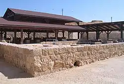 En el período bizantino temprano (siglos IV - V) parece que hubo una fortaleza en el sitio, que pudo haber sido sustituida en el siglo VI por una posada con forma cuadrada, construida alrededor de un patio central, proporcionando a los peregrinos cristianos habitaciones, el agua de una cisterna central y una gran iglesia para el culto.[5]