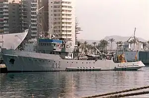 Operó conjuntamente con el Neptuno (A-20) desde su base de Cartagena,[5] hasta que finalmente, por resolución 56/1999, de 12 de febrero de 1999,[2] fue dado de baja, y posteriormente, fue cedido a Mauritania, entregándose el 17 de enero de 2000,[6] donde prestó servicio con el nombre Voum-Legleita (B-551)[1] hasta su hundimiento cerca de Nuakchot.