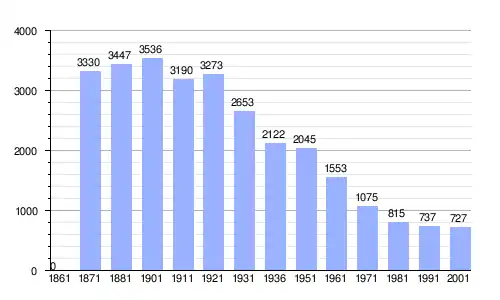 | Gráfica de evolución demográfica de Posina entre 1861 y 2001 |
