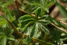 Es una planta herbácea perennifolia, que alcanza un tamaño de 5 a 20 cm de altura. El tallo postrado a ascendente y peciolos peludos, con pelos glandulares y rojizos. Las hojas basales son de largo pecíolo y se componen de siete foliolos. Las hojas son lanceoladas invertidas con cinco a ocho dientes en cada lado, de 10 a 25 mm de largo.