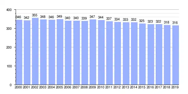 | Gráfica de evolución demográfica de Poulo entre 2000 y 2019 |