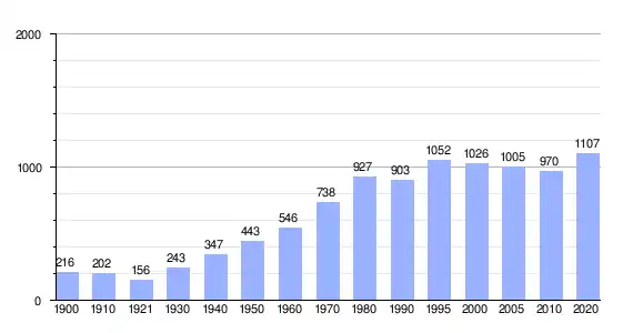 En 2020 registró una población de 1107 personas, lo que corresponde al 3.01 % de la población municipal.[7] De los cuales 510 son hombres y 597 son mujeres.[7]