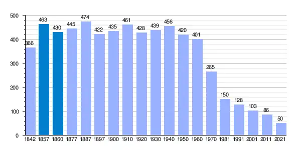 | Gráfica de evolución demográfica de Poyatos[5] entre 1842 y 2021 |