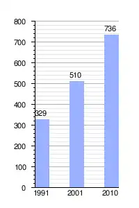 | Variación intercensal | + 44,3 % (2001 - 2010) | |
