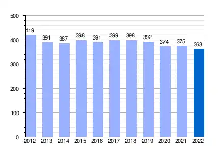 | Gráfica de evolución demográfica de Pozo H. (Almería) entre 2012 y 2022 |