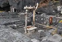 El brocal del pozo, revestido, ocultando las piedras originales.
