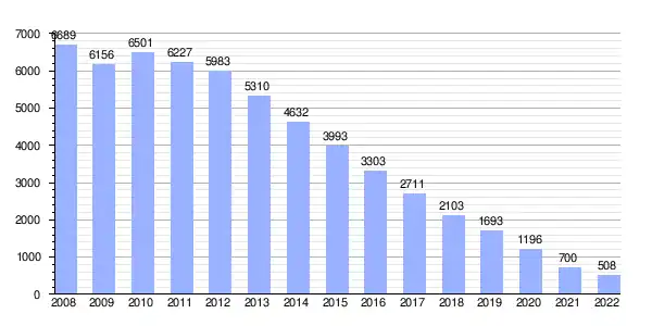| Gráfica de evolución de la deuda viva del Ayuntamiento de Pozoblanco entre 2008 y 2022 |