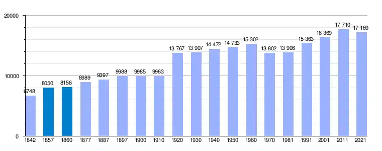 | Gráfica de evolución demográfica de Pozoblanco[6] entre 1842 y 2021 |