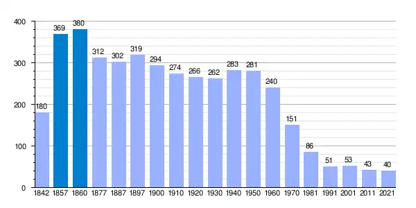 | Gráfica de evolución demográfica de Prádena de Atienza[2] entre 1842 y 2021 |