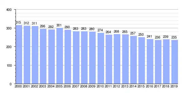 | Gráfica de evolución demográfica de Présaras entre 2000 y 2019 |