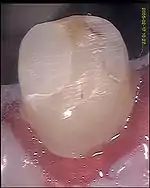 1983, Horn introdujo un método para cocer una carilla laminada.