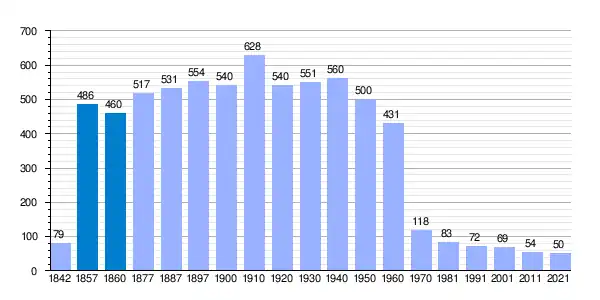 | Gráfica de evolución demográfica de Pradales[2] entre 1842 y 2021 |