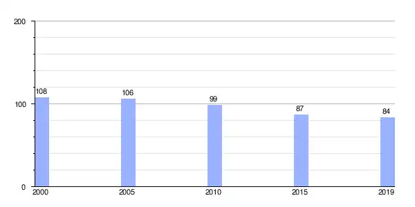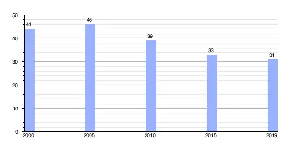| Gráfica de evolución demográfica de Pradeda (aldea) entre 2000 y 2019 |