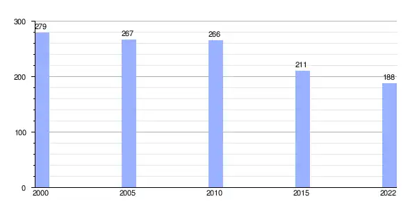 | Gráfica de evolución demográfica de Prado entre 2000 y 2022 |